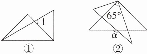 ;(2)(泰州中考)如图②,将分别含有$30^{\circ}$,$45^{\circ}$角的一副三角尺重叠,使直角顶点重合,若两直角重叠形成的角为$65^{\circ}$,则图中$∠ α$的度数为
