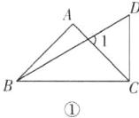 7. (1)75° 解析:如图①,∠ABC = ∠ACB = 45°,∠DBC = 30°,