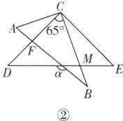 (2)(泰州中考)如图②,将分别含有$30^{\circ}$,$45^{\circ}$角的一副三角尺重叠,使直角顶点重合,若两直角重叠形成的角为$65^{\circ}$,则图中$∠ α$的度数为