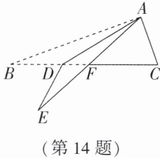 14. 新题型 双空题 如图,在$△ ABC$中,$∠ BAC = 90^{\circ}$,点$D$是$BC$上一点,将$△ ABD$沿$AD$翻折后得到$△ AED$,边$AE$交$BC$于点$F$。若$∠ C - ∠ B = 50^{\circ}$,$∠ BAD = x^{\circ}(0 < x≤ 45)$。