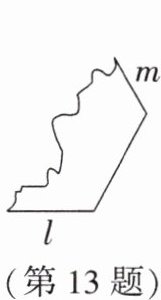 13. (2024·赤峰中考改编) 如图是正 $ n $ 边形纸片的一部分, 其中 $ l, m $ 是正 $ n $ 边形两条边的一部分, 若 $ l, m $ 所在的直线相交形成的锐角为 $ 60^{\circ} $, 则 $ n $ 的值是