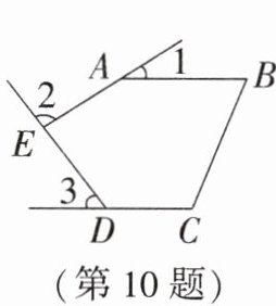 10. (2025·淮安期末) 如图, 在五边形 $ ABCDE $ 中, $ AB // CD, ∠ 1, ∠ 2, ∠ 3 $ 分别是 $ ∠ BAE $, $ ∠ AED, ∠ EDC $ 的外角, 则 $ ∠ 1 + ∠ 2 + ∠ 3 $ 等于 (