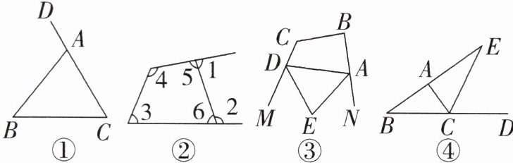 因为 $ AB // CD $,所以延长五边形 $ ABCDE $ 任意不相邻的两边,只能得出 4 个角.