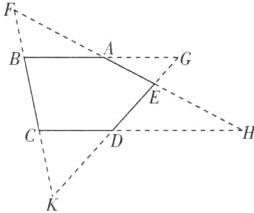 延长 $ CB $,$ EA $ 交于点 $ F $,延长 $ BA $,$ DE $ 交于点 $ G $,延长 $ CD $,$ AE $ 交于点 $ H $,延长 $ BC $,$ ED $ 交于点 $ K $,如图所示.