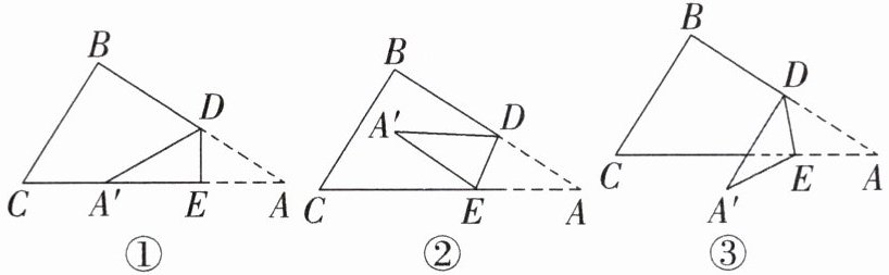 (3)如图③,当点$A$落在$△ ABC$外部且在$AC$下方时,猜想$∠BDA'$,$∠CEA'$和$∠A$的数量关系,并说明理由.