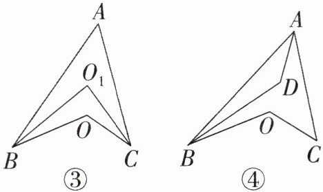 (2)如图③,$∠ABO$,$∠ACO$的平分线$BO_1$,$CO_1$交于点$O_1$,已知$∠BOC = 120^{\circ}$,$∠A = 50^{\circ}$,则$∠BO_1C =\_\_\_\_\_\_^{\circ}$;