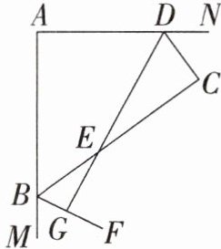 (2)若$x = y = 90$,$BF$平分与$∠ABC$相邻的外角$∠CBM$,$DG$平分$∠ADC$交$BC$于点$E$,交$BF$于点$G$,判断$DG$与$BF$的位置关系,并说明理由.