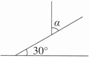 12. 如图,有一个与地面成 $30^{\circ}$ 角的斜坡,现要在斜坡上竖一电线杆,当电线杆与地面垂直时,它与斜坡所成的角 $α =$