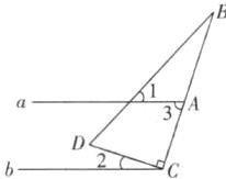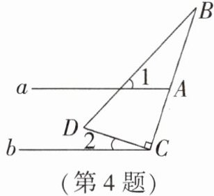 4. (2025·重庆期中)如图,直线 $a // b$,直角三角形如图放置,$∠ DCB = 90^{\circ}$,若 $∠ 1 + ∠ B = 65^{\circ}$,则 $∠ 2$ 的度数为 (