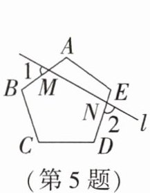 5. (2025·眉山中考)如图,直线 $l$ 与正五边形 $ABCDE$ 的边 $AB$,$DE$ 分别交于点 $M$,$N$,则 $∠ 1 + ∠ 2$ 的度数为 (
