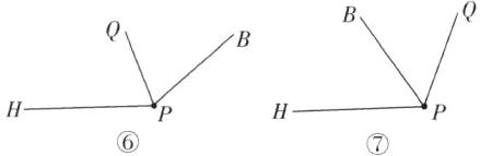 如图⑦,若$PB$平分$∠ QPH$,则$360 - 20t = \frac{1}{2}(10t - 40)$,解得$t = \frac{76}{5}$;