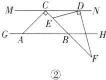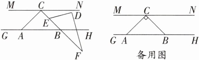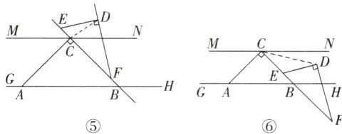 4. (2025·常州期中)如图,已知MN//GH,点C在MN上,点A,B在GH上.在△ABC中,∠ACB=90°,∠BAC=45°,点E,F在直线BC上,在△DEF中,∠EDF=90°,∠DFE=30°.