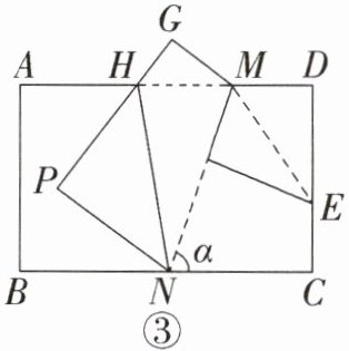 (3)由(2)可得∠PNB = ∠GMH = 180° - 2α,由折叠可得∠G = ∠D = 90°,∠C = ∠P = 90°,