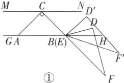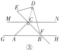 (3)将△DEF沿直线BC平移,当点D在MN上时,求∠CDE的度数.