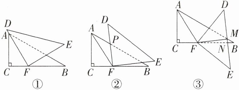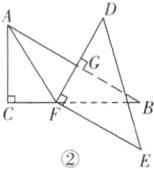 时,$DF⊥ AB$.(2)在旋转过程中,$DF$与$AB$的交点记为$P$,如图②,若$△ AFP$有两个内角相等,求$∠ APD$的度数.