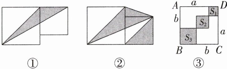 (2) 如图③,边长为$6$的正方形$ABCD$中放置两个长和宽分别为$a$,$b$($a < 6$,$b < 6$)的长方形,若长方形的周长为$16$,面积为$15.75$,则图③中阴影部分面积$S_1 + S_2 + S_3 = \_\_\_\_\_\_$。