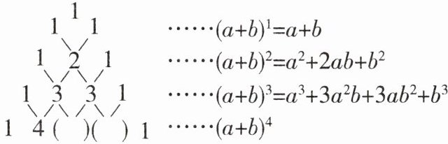 13. 新趋势 数学文化 我国南宋时期杰出的数学家杨辉是钱塘人,如图是他在《详解九章算法》中记载的“杨辉三角”。此图揭示了$(a + b)^n$($n$为非负整数)的展开式的项数及各项系数的有关规律。
