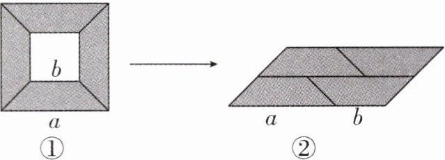 2. (2025·赣州期末)从边长为$a$的大正方形纸板上挖去一个边长为$b$的小正方形纸板后,将其裁成四个相同的等腰梯形(如图①),然后拼成一个平行四边形(如图②),那么通过计算两个图形阴影部分的面积,可以验证成立的公式为 (