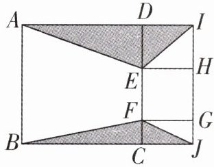 8. 如图,点 $D$,$C$,$H$,$G$ 分别在长方形 $ABJI$ 的边上,点 $E$,$F$ 在 $CD$ 上,若正方形 $ABCD$ 的面积等于 10,图中阴影部分的面积总和为 4,则正方形 $EFGH$ 的面积等于 (