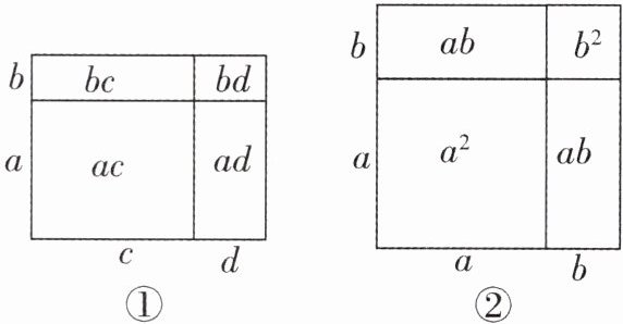6. (1)①$(a + b)(c + d)=ac + ad + bc + bd$ ②$(a + b)^{2}=a^{2}+2ab + b^{2}$
