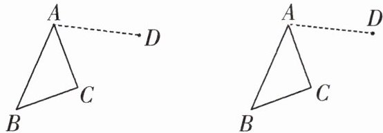 解析:方法一:如图①,过点 $B$ 作 $BE // AD$ 且使 $BE = AD$,过点 $C$ 作 $CF // AD$ 且使 $CF = AD$,然后顺次连接 $DE$,$EF$,$FD$ 即可;方法二:如图②,过点 $D$ 作 $DE // AB$ 且使 $DE = AB$,过点 $D$ 作 $DF // AC$ 且使 $DF = AC$,然后连接 $EF$ 即可.(合理即可)