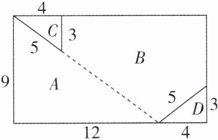 6. 如图是一张长方形纸片,按图中所示剪成A,B,C,D四块,图中各实线段的长度如图所示,这四块纸片可重新拼成一个正方形.拼法如下:B,D不动,将A和C进行平移,先将A向下平移3个单位长度,再向右平移4个单位长度,则C的平移情况为(