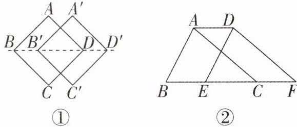 3. (1)如图①,将正方形ABCD沿BD方向平移得到正方形A'B'C'D',已知B'D=3 cm,A和A'之间的距离为2 cm,则B'D'=