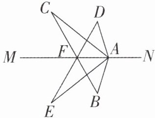 6. 如图,$△ABC$和$△ADE$关于直线$MN$对称,$BC$与$DE$的交点$F$在直线$MN$上.