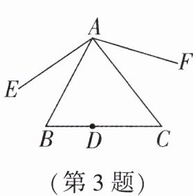 答案:3.D 解析:连接AD,由轴对称可得∠EAB=∠DAB,∠FAC=∠DAC,所以∠EAF=2∠BAC=132°,故选D.