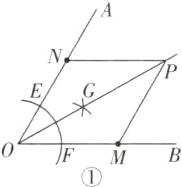 解析:如图②,以点 O 为圆心,以 OM 的长度为半径画弧,交 OA 于点 N,分别以点 M,N 为圆心,大于$\frac{1}{2}MN$的长度为半径画弧,两弧交于一点,过点 O 和两弧的交点作射线,连接 NQ 并延长,交射线于点 P,连接 PM,四边形 OMPN 即为所求;