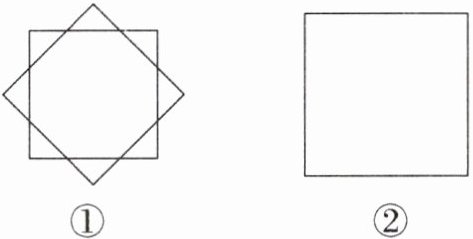 4. (2025·镇江期末)图①是由两张大小相同的正方形纸片摆放成的一幅美丽的图案,它既是轴对称图形又是中心对称图形。请在图②中再画出一个正方形,使它们组成与图①形状相同的图案。(要求:用无刻度的直尺和圆规作图,保留作图痕迹,不写作法)