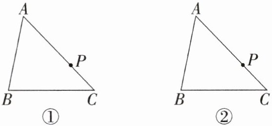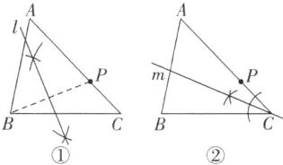 (2)如图②,作一条过点 C 的直线 m,使得点 P 关于 m 的对称点落在 BC 上。