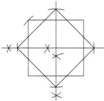 解析:先作正方形相邻两边的垂直平分线,然后再以垂直平分线的交点为圆心,对角线长度的一半为半径画弧,与两条垂直平分线交于四个点,依次连接即为所求图形.