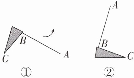 5. (2025·扬州期中)如图①,教室里有一个倒地的装垃圾的灰斗,BC 与地面的夹角为 50°,∠C=25°,小贤同学将它扶起平放在地面上(如图②),则灰斗柄 AB 绕点 C 转动的角度最小为