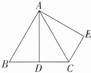 4. 如图,△ABC 是等边三角形,D 在边 BC 上,AD⊥BC,△ABD 经过旋转后到达△ACE 的位置,已知等边三角形的三个内角均为 60°,请回答下列问题: