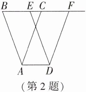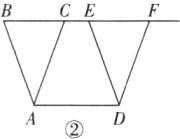 2. 2或4 解析:根据题意可得线段BE,CF和AD的长度即是平移的距离,则AD=CF=BE,设AD = 3t cm,则CE = t cm.如图①,当点E在BC上时,BE + EC = BC,3t + t = 8,解得t = 2;如图②,当点E在BC的延长线上时,BC + CE = AD = BE,8 + t = 3t,解得t = 4.故答案为2或4.
