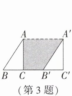 答案:3. C 解析:由平移可得 $ A A ^ { \prime } = B B ^ { \prime } = 10 \mathrm { cm } $,$ A A ^ { \prime } // B B ^ { \prime } $,所以 $ B ^ { \prime } C = B B ^ { \prime } - B C = 5 \mathrm { cm } $. 因为 $ ∠ A C B = 90 ^ { \circ } $,所以 $ A C ⊥ B ^ { \prime } C $,所以阴影部分的面积为 $ \frac { 1 } { 2 } × ( 10 + 5 ) × 8 = 60 ( \mathrm { cm } ^ { 2 } ) $. 故选 C.