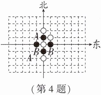 4. 如图,老师让同学们利用棋子在棋盘上拼出一个中心对称图形(颜色忽略),为了增加难度,加入了方向角,则下一个棋子应该放在中心点的(