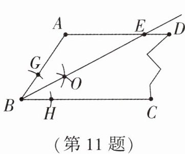 °.答案:11. 28 解析:由作图可知 $ ∠ A B E = ∠ C B E $. 因为 $ A D // B C $,所以 $ ∠ A E B = ∠ C B E $,所以 $ ∠ A B E = ∠ A E B $. 因为 $ ∠ A = 124 ^ { \circ } $,所以 $ ∠ A E B = \frac { 1 } { 2 } × ( 180 ^ { \circ } - 124 ^ { \circ } ) = 28 ^ { \circ } $.