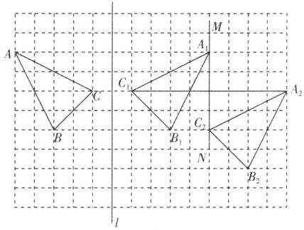 (1)若△A₁B₁C₁和△ABC关于直线l对称,请画出△A₁B₁C₁;