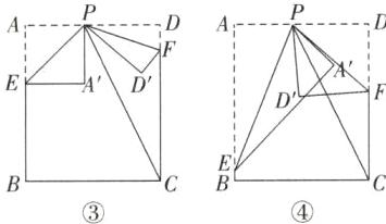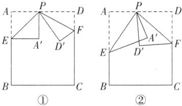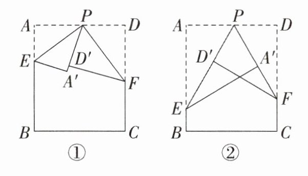 (2)$60^{\circ}$ 解析:由折叠得$∠APE = ∠A'PD'$,$∠DPF = ∠A'PD'$,所以$∠APE = ∠A'PD' = ∠DPF$。因为$∠APE + ∠A'PD' + ∠DPF = 180^{\circ}$,所以$∠A'PD' = 60^{\circ}$,即$∠EPF = 60^{\circ}$。