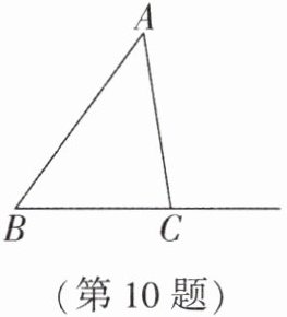 10. 30 或 15 或 45 解析:第一种情况:如图①,当点$E$在$BC$上时,过点$C$作$CG// AB$。因为$△DEF$由$△ABC$平移得到,所以$AB// DE$。因为$CG// AB$,$AB// DE$,所以$CG// DE$。①当$∠ACD = 2∠CDE$时,设$∠CDE = x$,则$∠ACD = 2x$,所以$∠ACG = ∠BAC = 45^{\circ}$,$∠DCG = ∠CDE = x$。因为$∠ACG = ∠ACD + ∠DCG$,所以$2x + x = 45^{\circ}$,解得$x = 15^{\circ}$,所以$∠CDE = 15^{\circ}$;②当$∠CDE = 2∠ACD$时,设$∠CDE = x$,则$∠ACD = \frac{1}{2}x$,所以$∠ACG = ∠BAC = 45^{\circ}$,$∠DCG = ∠CDE = x$。因为$∠ACG = ∠ACD + ∠DCG$,所以$x + \frac{1}{2}x = 45^{\circ}$,解得$x = 30^{\circ}$,所以$∠CDE = 30^{\circ}$;