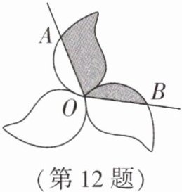 12. 如图所示的图案由形状相同的三个叶片组成,绕点 $O$ 旋转 $120^{\circ}$ 后可以和自身重合.若每个叶片的面积为 $5cm^{2}$,$∠ AOB$ 为 $120^{\circ}$,则图中阴影部分的面积之和为