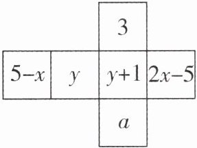 7. 如图是一个正方体的展开图,标注了字母$a$的面是正方体的正面。如果该正方体相对两个面上的代数式的值相等,那么$x + y$的值为 (
