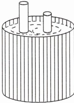 10. (2025·无锡校级月考)如图,两根铁棒直立于桶底水平的木桶中,在桶中加入水后,一根铁棒的$\frac{1}{3}$露出水面,另一根铁棒的$\frac{1}{4}$露出水面。两根铁棒的长度之和为$34cm$,此时木桶中水的深度是