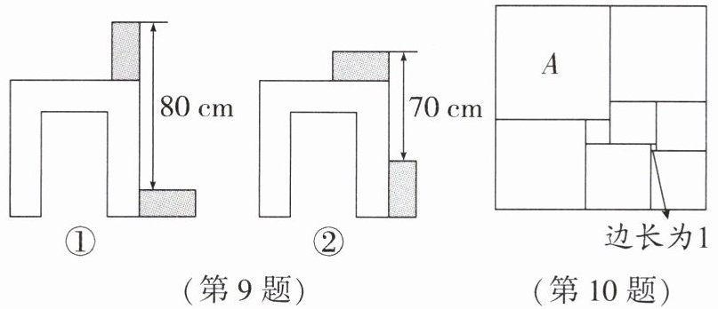 10. 若一个长方形可以分割为几个大小不同的小正方形,我们称这个长方形为完美长方形,如图,该长方形被分割成 9 个大小不同的正方形.已知最小正方形的边长为 1,则最大正方形 A 的面积为