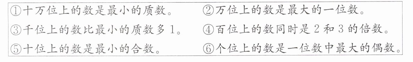 ①十万位上的数是最小的质数,最小的质数是2,所以十万位是2;