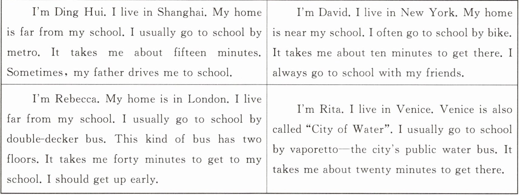 (A)丁辉正在和他的网友们讨论上学的方式。阅读表格,判断下列句子正(T)误(F)。(5分)