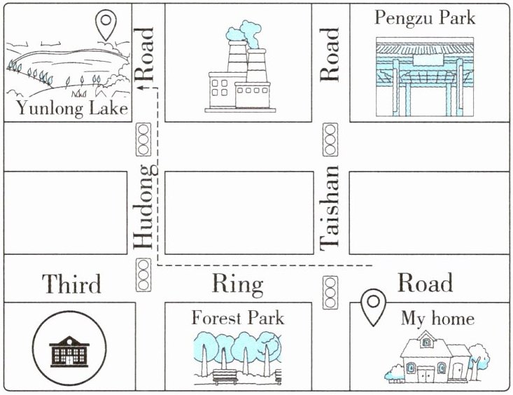 答案:四、how;along;right;second;Hudong;left;Is;by;Where's