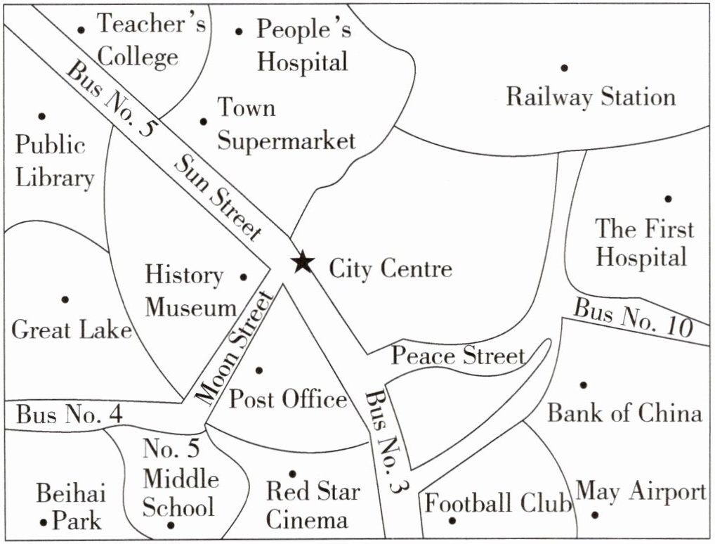 )1. They can take Bus to City Centre from the Football Club.A. No. 5 B. No. 3 C. No. 4